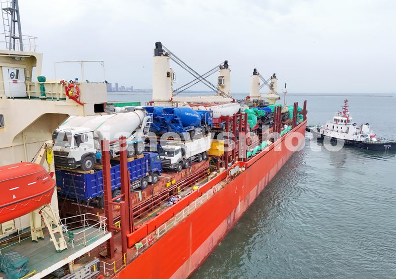 图片说明:2025年6月18日,在山东港口烟台港蓬莱港区,装载着国产工程车辆的货轮起航驶往拉美。