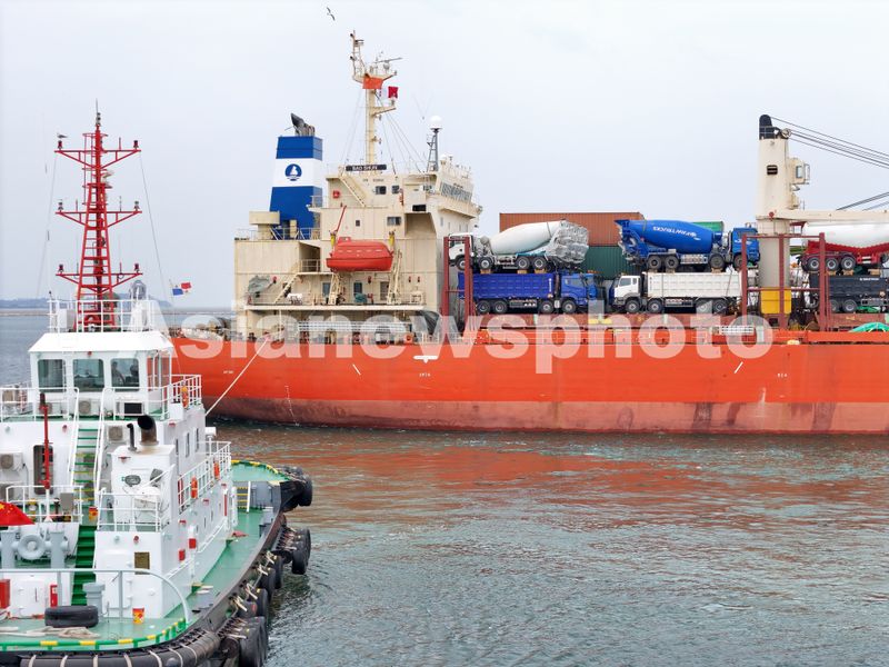 图片说明:2025年6月18日,在山东港口烟台港蓬莱港区,装载着国产工程车辆的货轮起航驶往拉美。