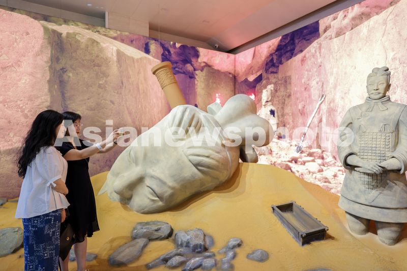 2025年6月20日,游人在内蒙古数字文旅新天地“寻迹人类文明”主题空间现场拍照打卡。