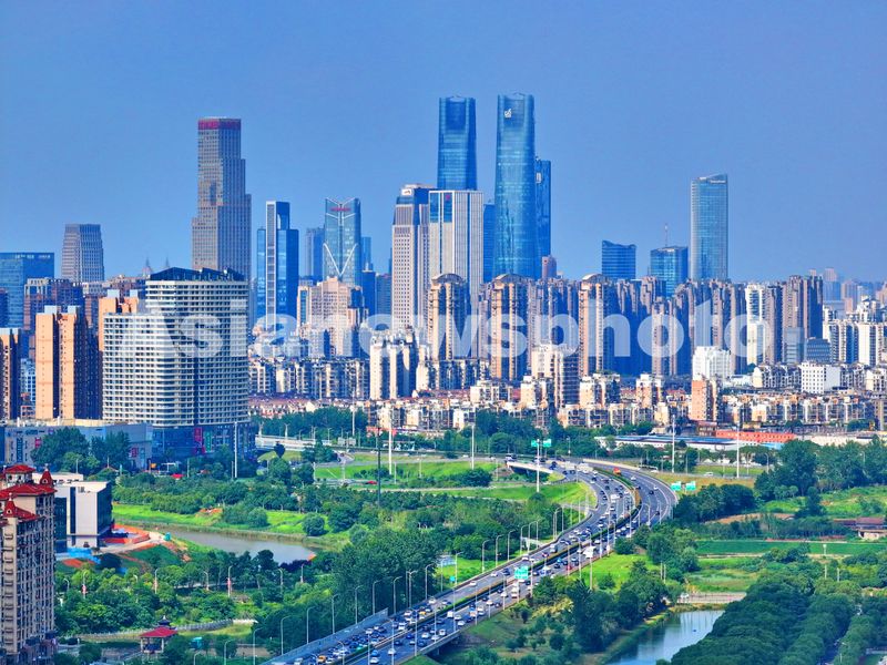 图片说明:2025年6月26日,江西省南昌市红谷滩区西一环路上车辆往来疾驰,公路沿线高楼林立、树木葱郁。