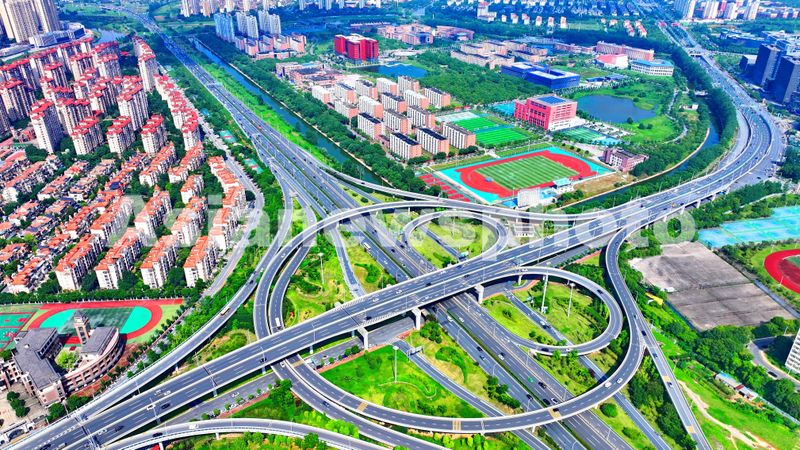 图片说明:2025年6月26日,江西省南昌市红谷滩区前湖立交桥上车辆往来疾驰,公路沿线高楼林立、树木葱郁。