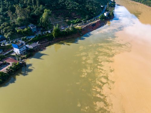 贵州从江:都柳江现“泾渭分明”景观 查看组图