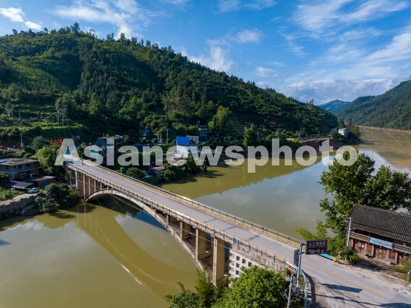 图片说明:2025年7月2日,珠江上游都柳江贵州省从江县四寨河口段出现“泾渭分明”自然景观(无人机照片)。