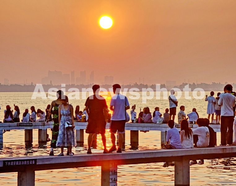 图片说明:7月6日凌晨至一大早,湖北省武汉市民和外地游客,不约而同在东湖凌波门,观日出,赏湖景,迎小暑。