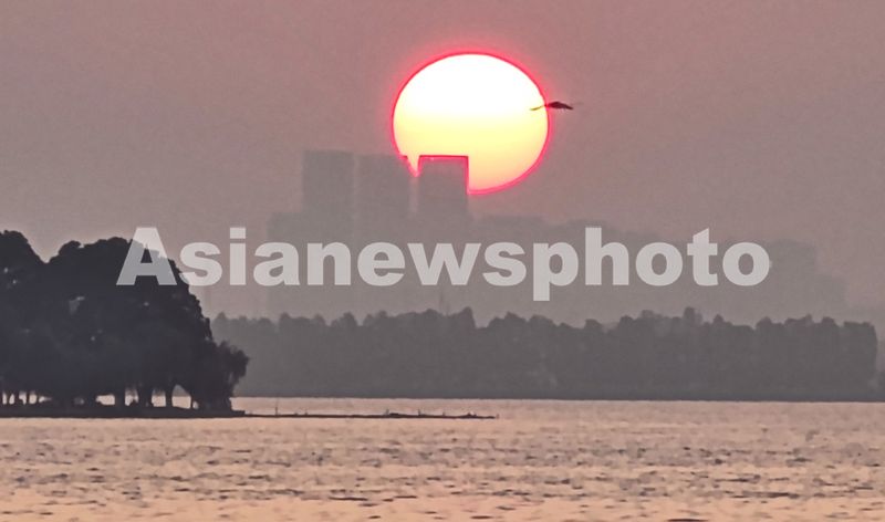 湖北武汉:东湖凌波门观日出迎小暑 查看组图