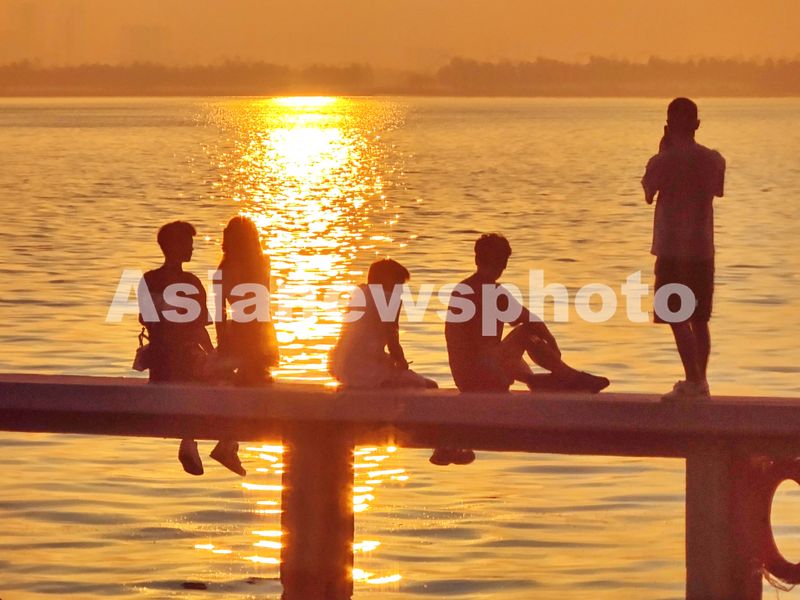 图片说明:7月6日凌晨至一大早,湖北省武汉市民和外地游客,不约而同在东湖凌波门,观日出,赏湖景,迎小暑。