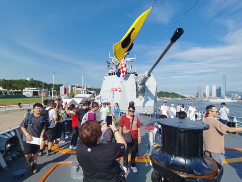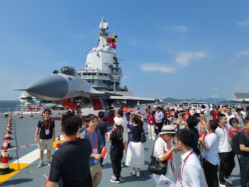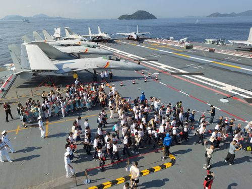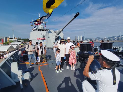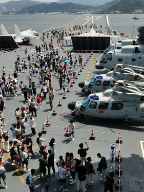 2025年7月4日,锚泊在维多利亚港的山东舰对香港青少年学生开放。据了解,由中国人民解放军海军航空母舰山东舰,导弹驱逐舰延安舰、湛江舰及导弹护卫舰运城舰组成的航母编队7月3日抵达香港,开启为期5天的访问活动。