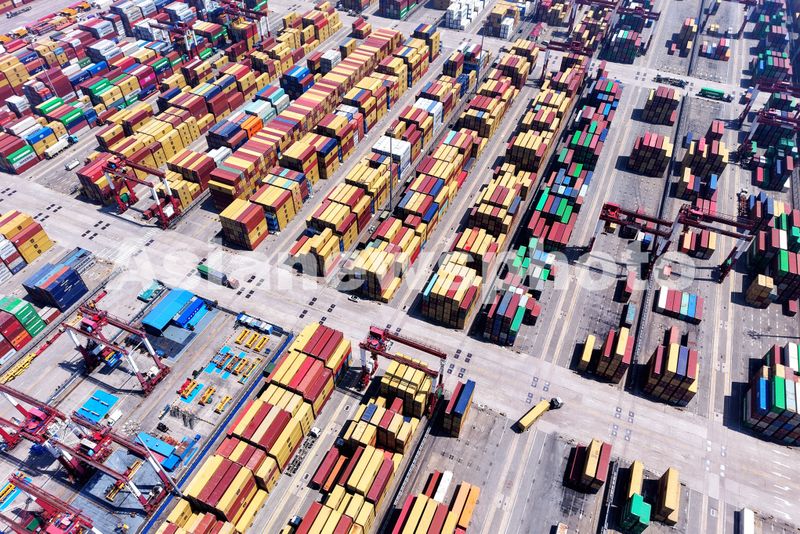 图片说明:2025年7月5日,山东港口青岛港,堆场堆放的外贸集装箱。