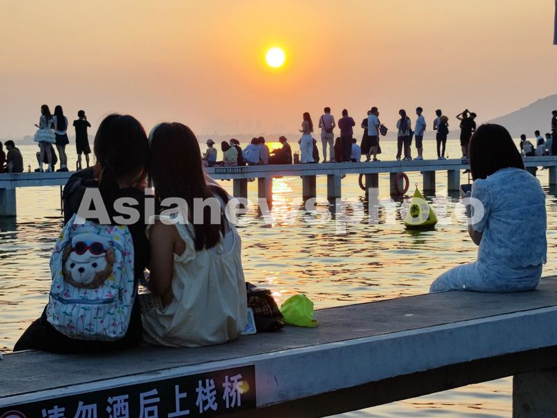湖北武汉:东湖凌波门观日出迎小暑 查看组图