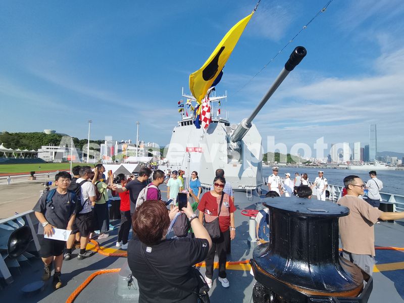 2025年7月4日,锚泊在维多利亚港的山东舰对香港青少年学生开放。据了解,由中国人民解放军海军航空母舰山东舰,导弹驱逐舰延安舰、湛江舰及导弹护卫舰运城舰组成的航母编队7月3日抵达香港,开启为期5天的访问活动。