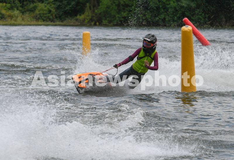 2025年7月10日,浙江省金华市婺城区长岭水库,国家动力冲浪板集训队运动员在训练中,备战2025年第12届世界运动会比赛。