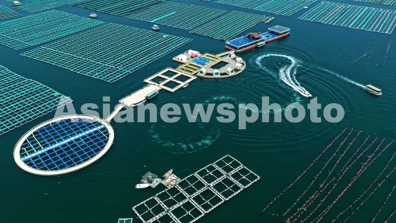图片说明:2025年7月11日,游客乘坐游船在山东省荣成市桑沟湾海洋牧场饱览海上美丽风光、体验生态养殖、乐享夏日美好时光。