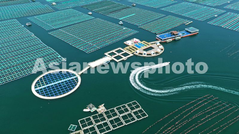 图片说明:2025年7月11日,游客乘坐游船在山东省荣成市桑沟湾海洋牧场饱览海上美丽风光、体验生态养殖、乐享夏日美好时光。