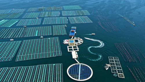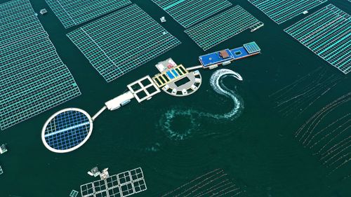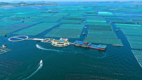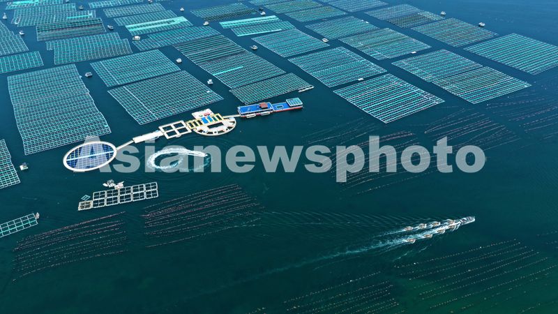 图片说明:2025年7月11日,游客乘坐游船在山东省荣成市桑沟湾海洋牧场饱览海上美丽风光、体验生态养殖、乐享夏日美好时光。