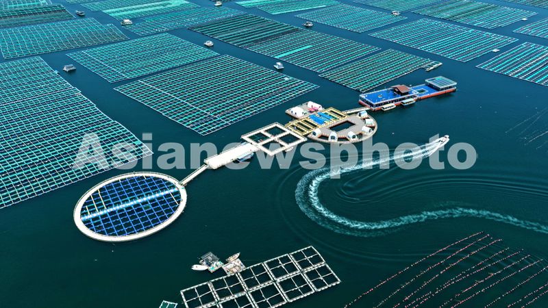 图片说明:2025年7月11日,游客乘坐游船在山东省荣成市桑沟湾海洋牧场饱览海上美丽风光、体验生态养殖、乐享夏日美好时光。