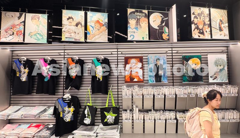 图片说明:2025年7月14日,日本JUMP首座二次元商业综合体落户上海美罗城,插画T恤等漫画周边谷子吸引动漫粉丝文旅消费。