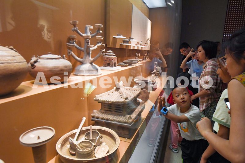 暑假期间,不少中小学生在家人陪同下,来到南京博物院,近距离观赏文物、感知文明,体验传统文化魅力。