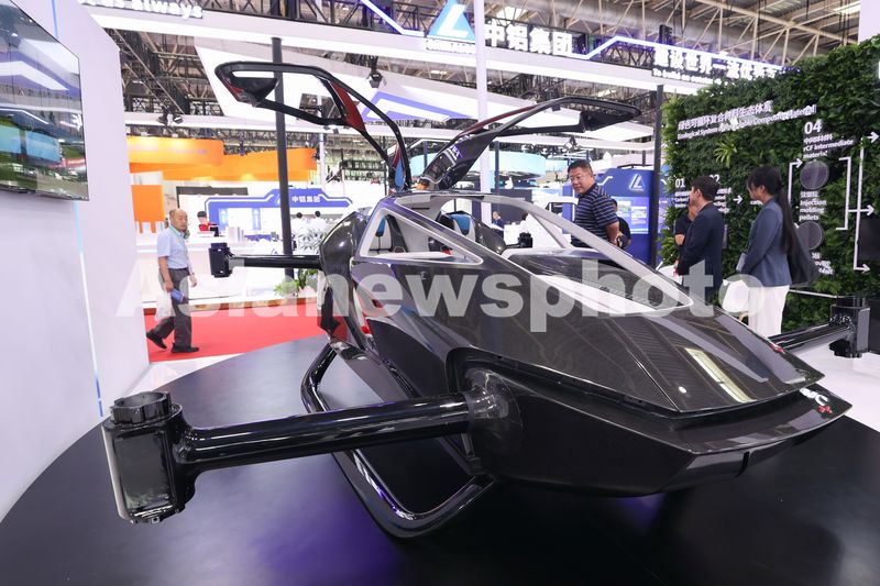 图片说明:2025年7月16日,北京,参观者在第三届中国国际供应链促进博览会上观看飞行汽车机身。