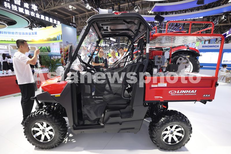 图片说明:2025年7月16日,北京,参观者在第三届中国国际供应链促进博览会上观看四轮消防摩托车。