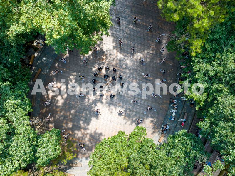 2025年7月17日,岜沙苗寨的村民在为游客表演民族舞蹈(无人机照片)。