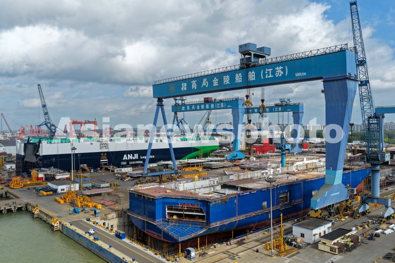 2025年7月21日,位于江苏省扬州市仪征市的招商局金陵船厂一派繁忙景象,工人们开足马力,抓紧建造各类大型船舶。