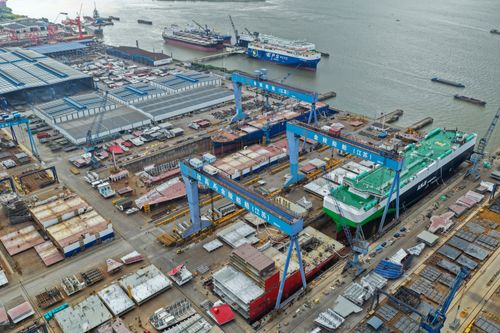2025年7月21日,位于江苏省扬州市仪征市的招商局金陵船厂一派繁忙景象,工人们开足马力,抓紧建造各类大型船舶。