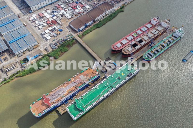 2025年7月21日,位于江苏省扬州市仪征市的招商局金陵船厂一派繁忙景象,工人们开足马力,抓紧建造各类大型船舶。