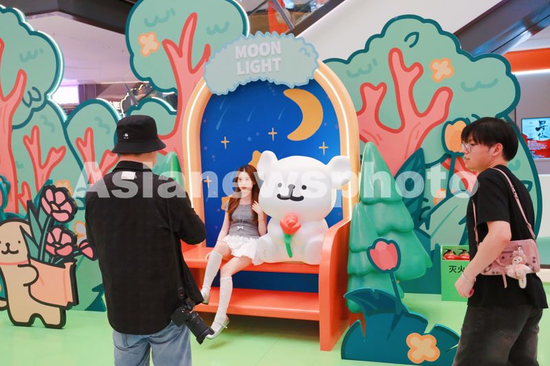 2025年7月19日,上海旅游节国际动漫月,治愈系顶流IP线条小狗中国首展亮相徐汇元宇宙街区“元界”,商场内奇幻童趣的二次元卡通公园吸引游客打卡。