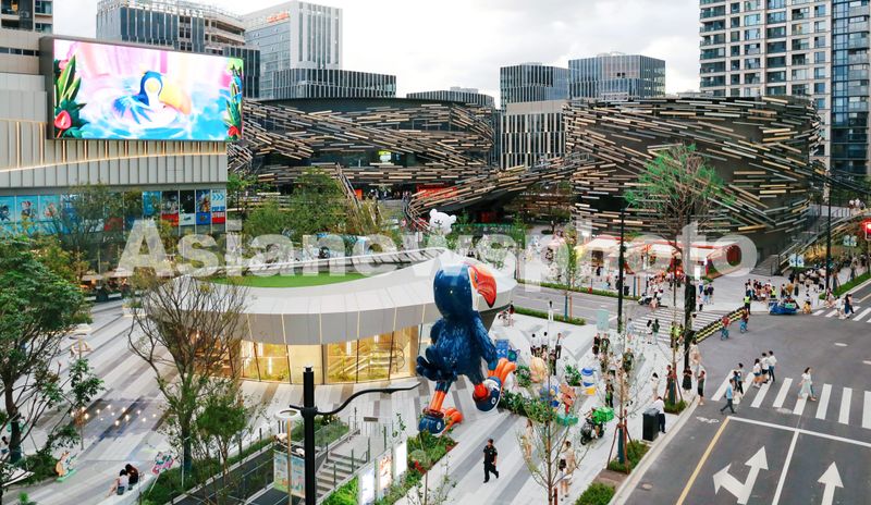 2025年7月19日,上海,徐汇元宇宙街区“元界”内新落成的核心地标——国际建筑大师隈研吾设计的鑫耀光环Live剧场,其造型如以“飘带”为灵感的悬浮艺术装置,未来将承接文娱演出、电竞赛事等。