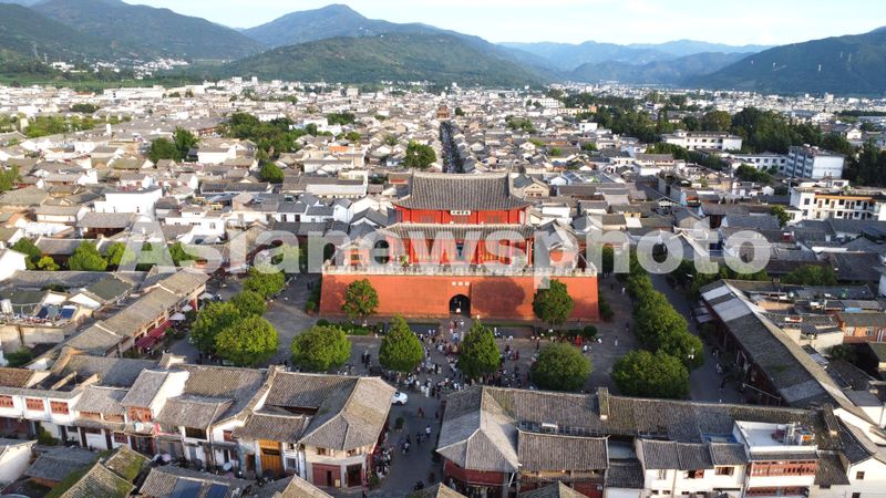 图片说明:2025年7月18日,游客在云南省大理州巍山县巍山古城南诏古街旅游观光。
