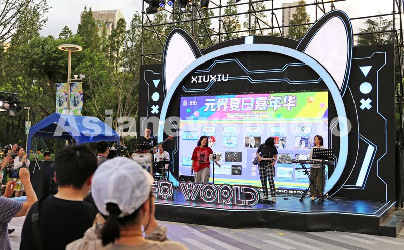 2025年7月19日,上海旅游节国际动漫月,徐汇元宇宙街区“元界”举办二次元夏日狂欢节,舞台音乐会渲染快乐狂欢气氛。