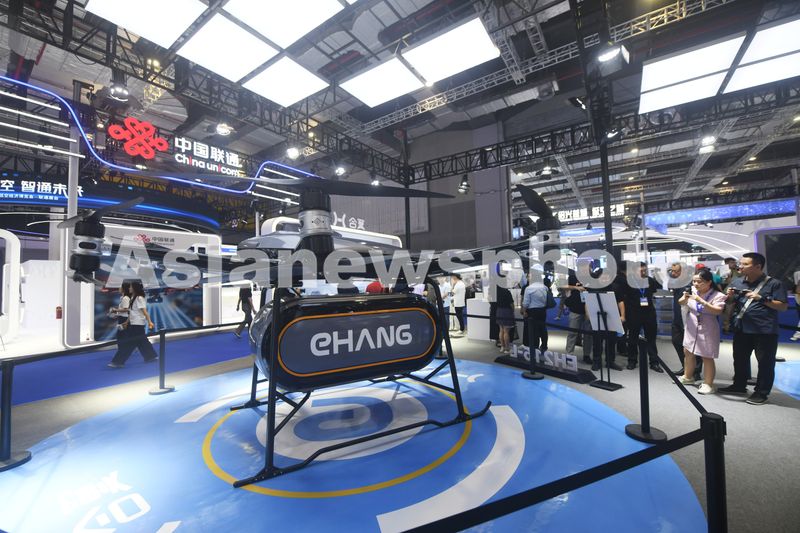 图片说明:2025年7月23日,观众在2025国际低空经济博览会上观看亿航的货运无人机。