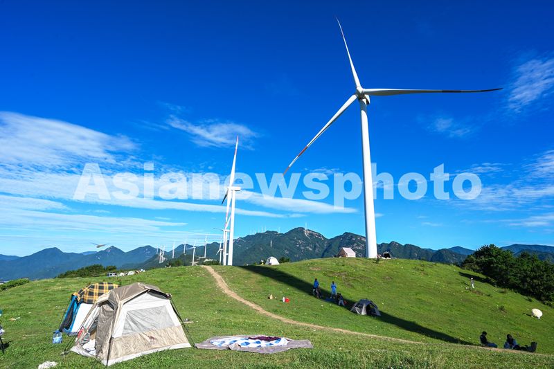图片说明:2025年7月20日,游客在安徽省安庆市岳西县牛草山游玩,乐享假日生活。