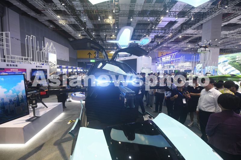 图片说明:2025年7月23日,观众在2025国际低空经济博览会上观看一款车机合一的飞行汽车。