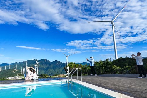 2025年7月20日,游客在安徽省安庆市岳西县牛草山游玩,乐享假日生活。