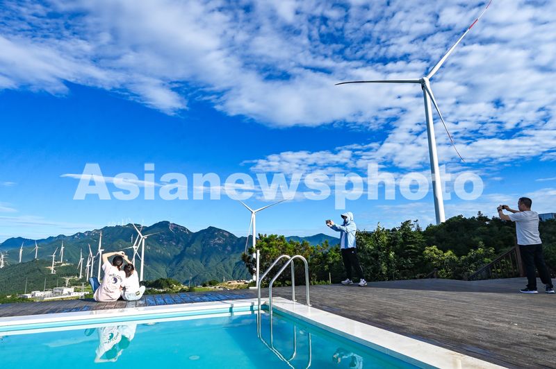 图片说明:2025年7月20日,游客在安徽省安庆市岳西县牛草山游玩,乐享假日生活。