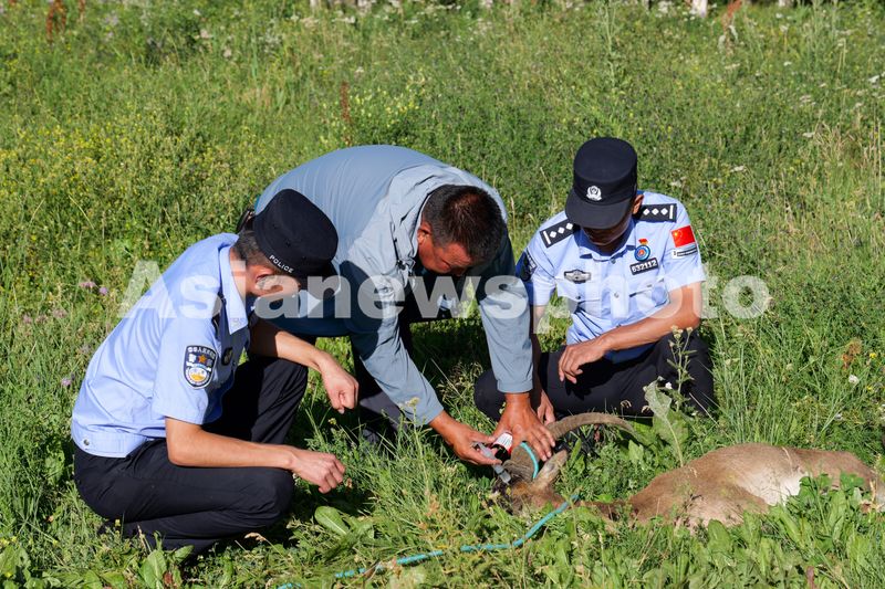 2025年7月21日,民警协助专业救援人员对国家二级保护动物北山羊开展救助。