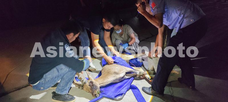 2025年7月21日,民警协助专业救援人员对国家二级保护动物北山羊开展救助。