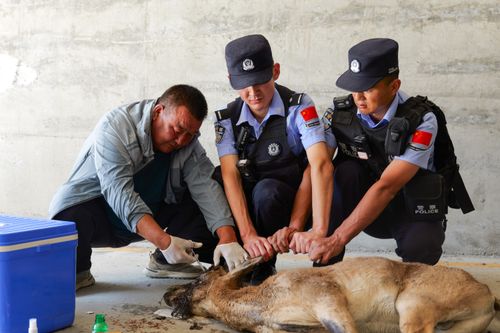 2025年7月21日,民警协助专业救援人员对国家二级保护动物北山羊开展救助。