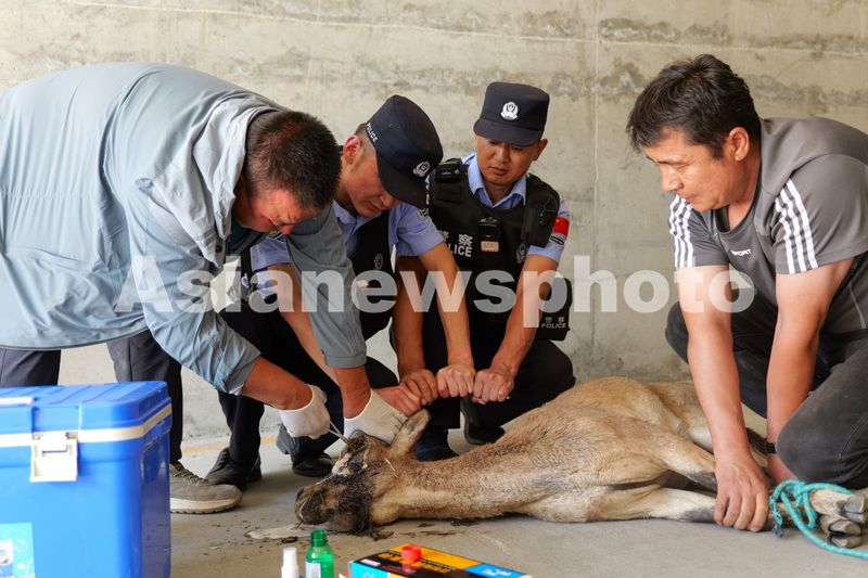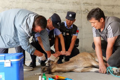 派出所迅速联系富蕴县野生动物救助中心、乡政府及畜牧站,并携带医疗救援箱协助专业救援人员前往处置。在专业救援人员初步检查后,此野生动物为国家二级保护动物北山羊,因头部受伤为躲避蚊虫叮咬误入在新疆有色金属工业集团稀有金属有限责任公司电力公司前隧道内。