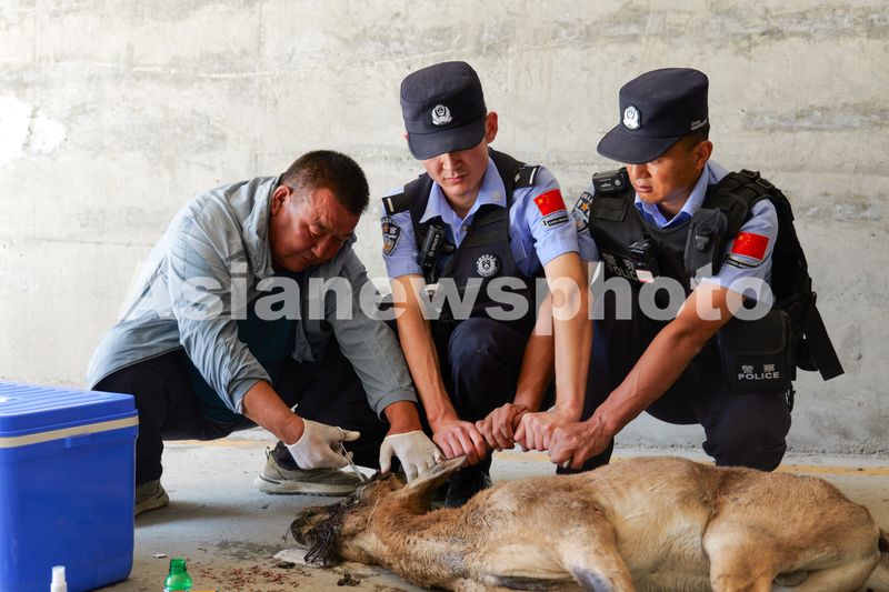 2025年7月21日,民警协助专业救援人员对国家二级保护动物北山羊开展救助。