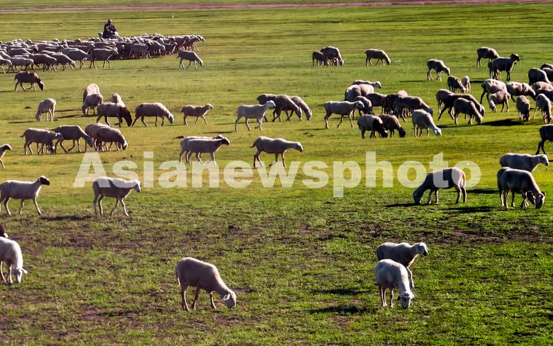 图片说明:2025年8月9日,内蒙古呼伦贝尔大草原一望无际,成群的牛马羊在草原上享受着美味的青草。