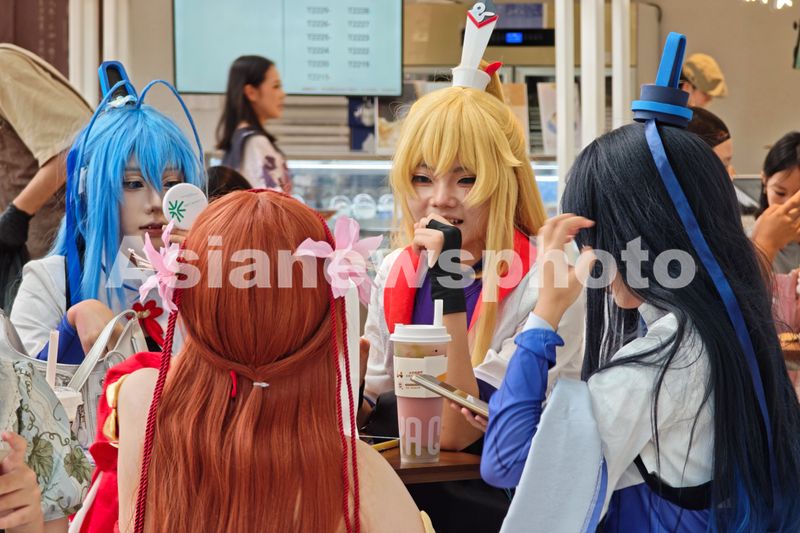 图片说明:2025年8月11日,上海静安大悦城内众多cosplayer正聚会聊天、逛店打卡,集体出没的cosplayer让这座商场“二次元”浓度飙升。