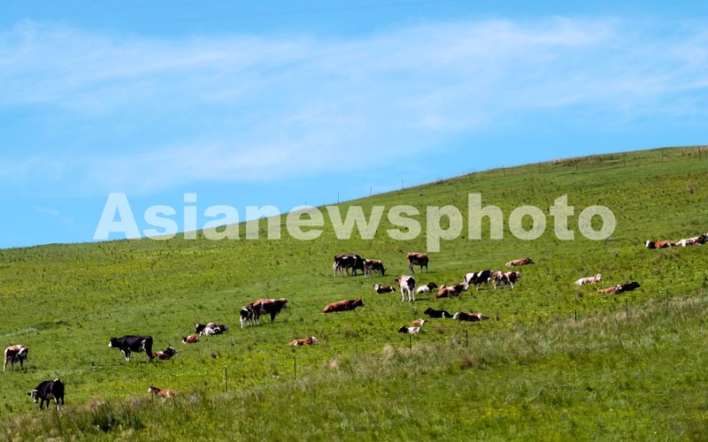 图片说明:2025年8月9日,内蒙古呼伦贝尔大草原一望无际,成群的牛马羊在草原上享受着美味的青草。