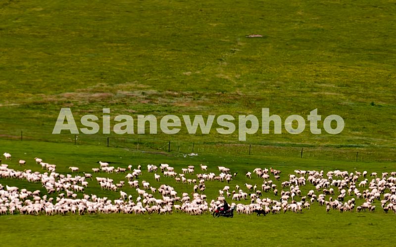 图片说明:2025年8月9日,内蒙古呼伦贝尔大草原一望无际,成群的牛马羊在草原上享受着美味的青草。