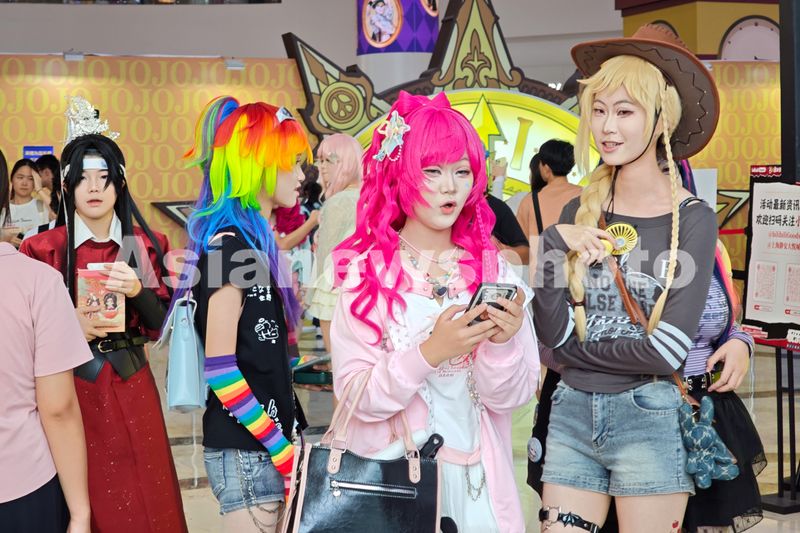图片说明:2025年8月11日,上海静安大悦城内众多cosplayer正聚会聊天、逛店打卡,集体出没的cosplayer让这座商场“二次元”浓度飙升。