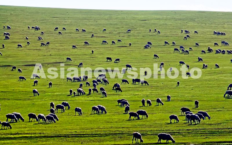 图片说明:2025年8月9日,内蒙古呼伦贝尔大草原一望无际,成群的牛马羊在草原上享受着美味的青草。