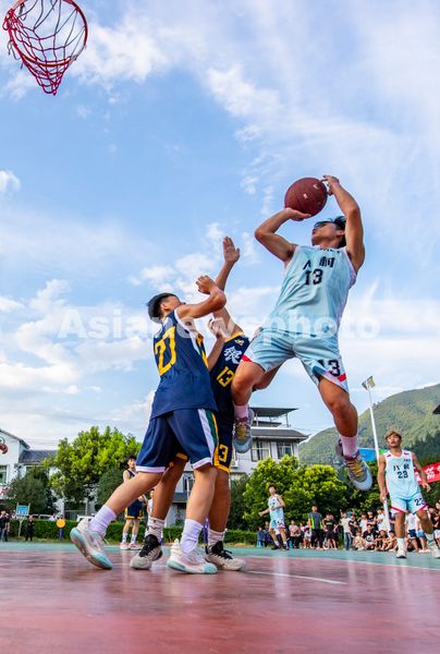 2025年8月12日,贵州省从江县刚边壮族乡,参赛球员在进行篮球比赛。