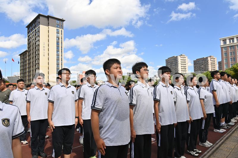 图片说明:8月15日,浙江省东阳市中天高级中学的高一新生在参加军训。
