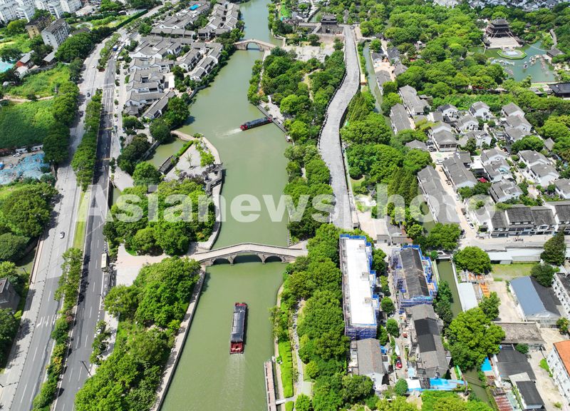图片说明:2025年8月15日,无人机航拍苏州古城、街坊、河道在蓝天白云的映衬下,呈现出水清、岸绿、景美的城市生态画卷,别有一番江南水乡独特风韵。